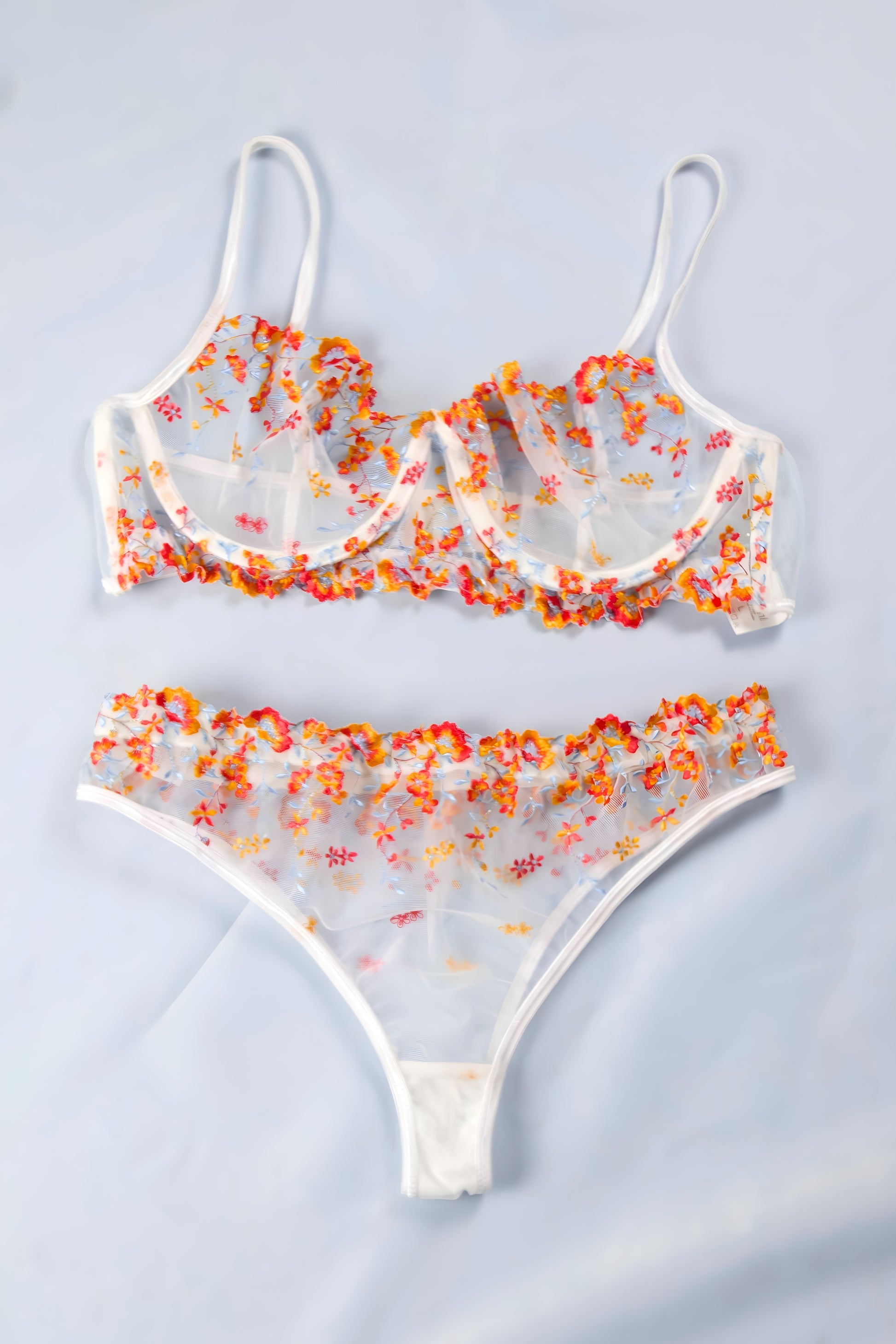 Floral Embroidered Mesh Lingerie Set